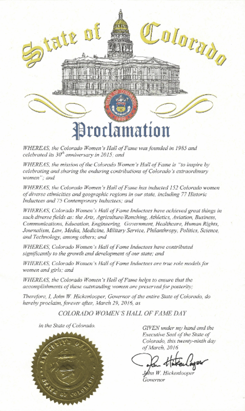 COLORADO WOMEN’S HALL OF FAME DAY –